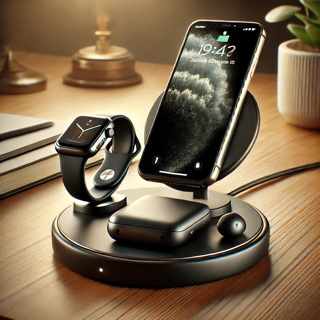 - iPhone、Apple Watch、AirPodsなど3つのデバイスを同時に充電できるため、充電管理が簡単になる