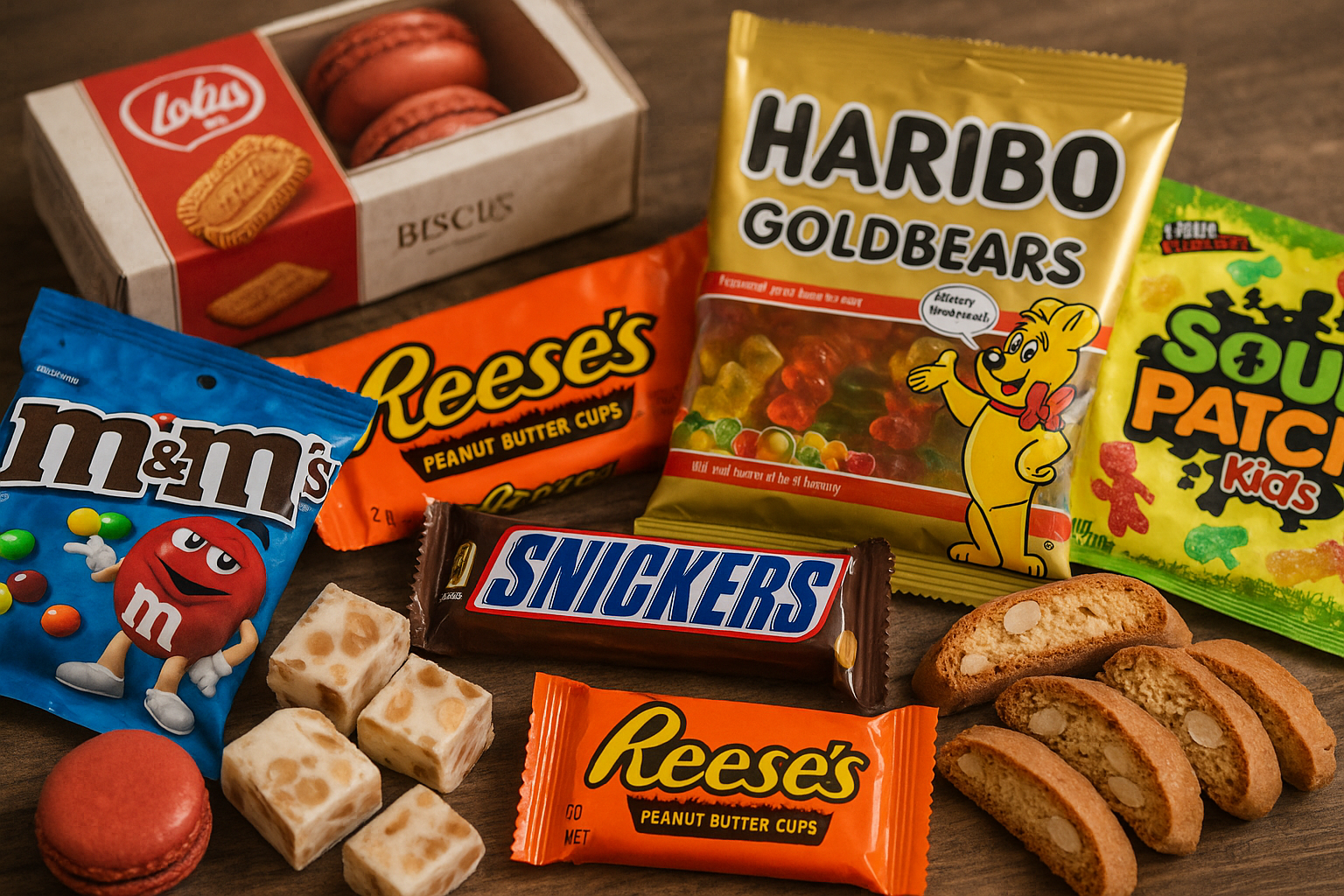 まず、日本でも定番となっているアメリカのお菓子には「M&M’s」「Snickers」「Hershey’s」などがあります。これらはドン・キホーテやカルディコーヒーファームなどの店舗で広く取り扱われており、定番の味から季節限定フレーバーまで揃っています。