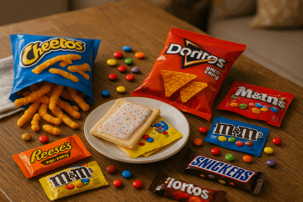 また、「Cheetos」や「Doritos」といった濃いフレーバーのスナックチップスも非常に人気があります。チーズ味やチリ味など、味のインパクトが強く、パーティーや映画鑑賞のお供として定番です。これらは通常のポテトチップスよりも味が濃く、脂質や塩分が多めですが、クセになる風味でリピーターが多い点が特徴です。