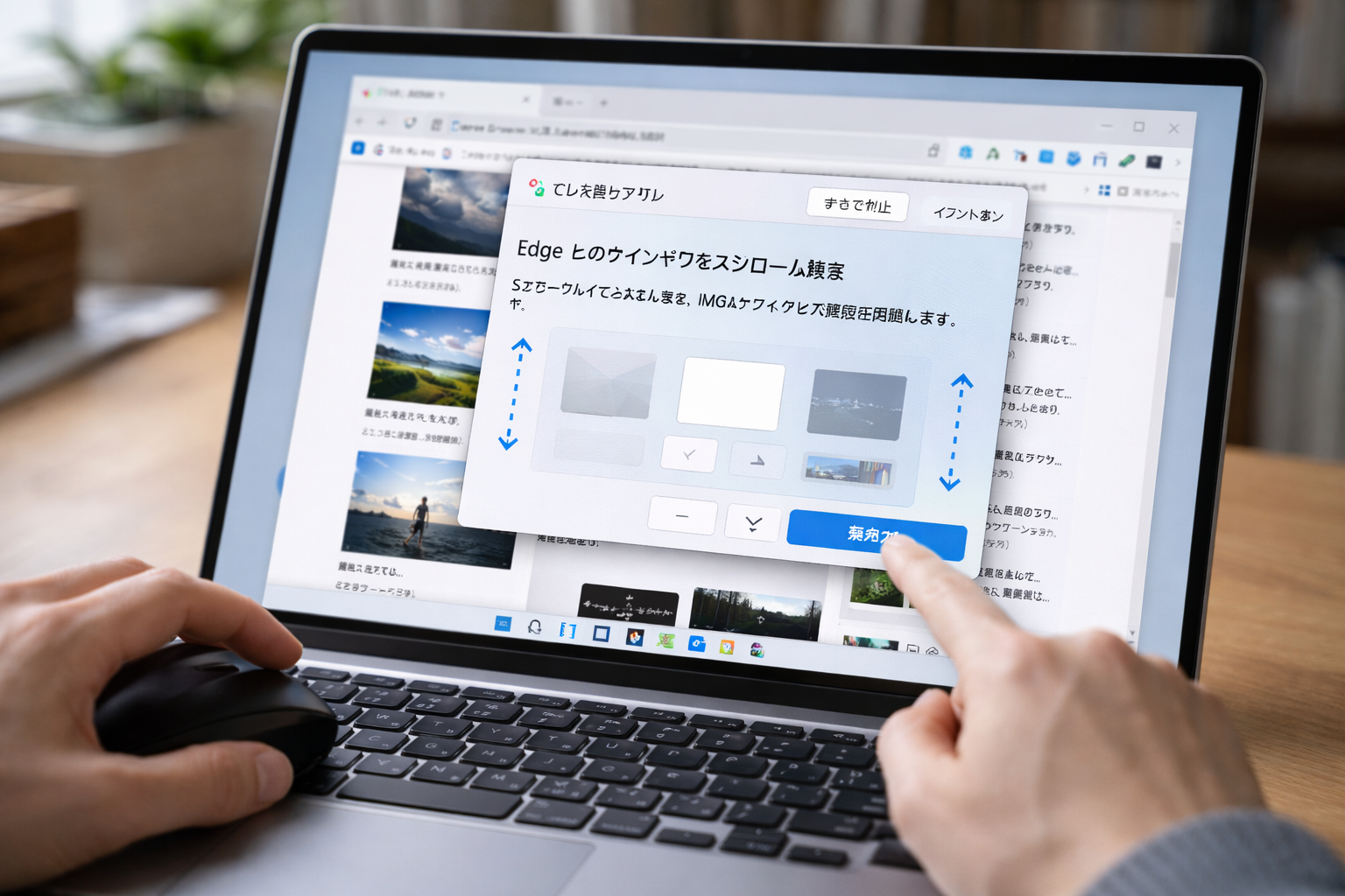 ここで迷わず「ページ全体をキャプチャする」をクリックしましょう。すると、Edgeが自動的にブラウザの最下部までスーッとスクロール処理を行ってくれます。この時、Edgeのシステムがとても優秀なのは、ただ下に移動するだけでなく、スクロールしないと表示されないように設定されている画像(いわゆる遅延読み込み、Lazy Loadingの画像)も裏側でしっかりと読み込んでから画像化してくれる点です。これにより、長いページの下の方に行くと画像が真っ白になって抜けてしまう、というよくある失敗を防いでくれます。