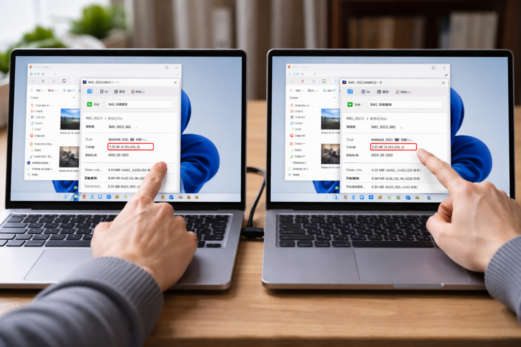 - Windowsでのサイズ確認方法